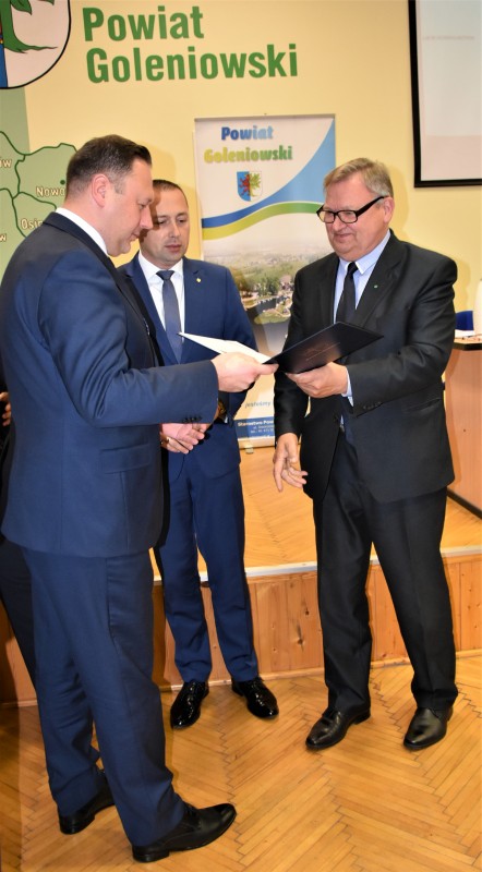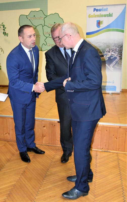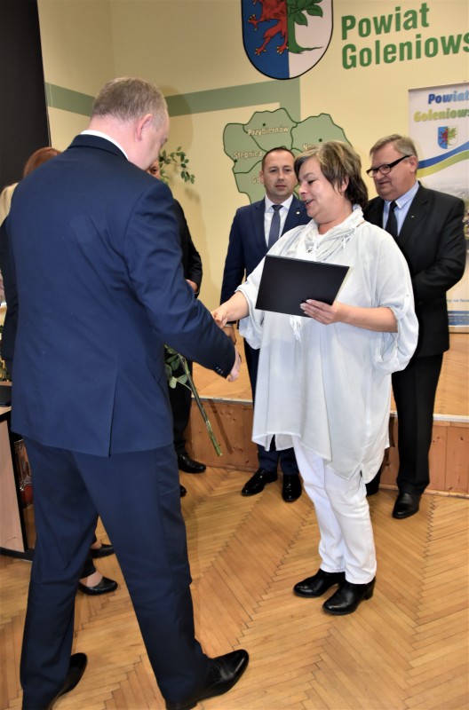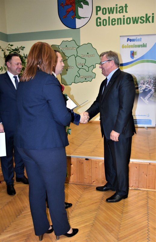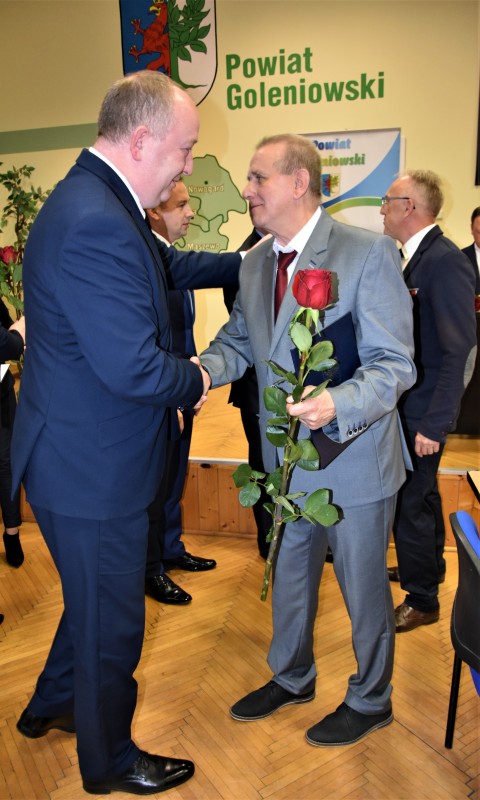 Ostatnia sesja mijającej kadencji była także okazją do podsumowania 4 lat pracy Radnych i Zarządu Powiatu Goleniowskiego, a także złożenia podziękowań wszystkim zaangażowanym w działalność i rozwój Powiatu Goleniowskiego. Przewodniczący Rady Kazimierz Ziemba oraz Starosta Goleniowski Tomasz Kulinicz skierowali swoje podziękowania przede wszystkim do Radnych i Członków Zarządu, pracowników Starostwa Powiatowego w Goleniowie, dyrektorów, kierowników, pracowników jednostek organizacyjnych powiatu. Sesję V kadencji zakończyło uroczyste wręczenie okolicznościowych podziękowań radnym.