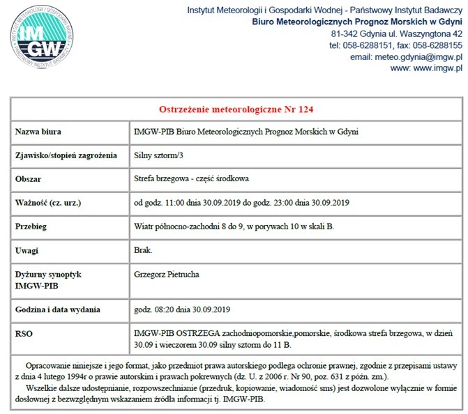 Ostrzeżenie IMGW - Uwaga na silny wiatr!