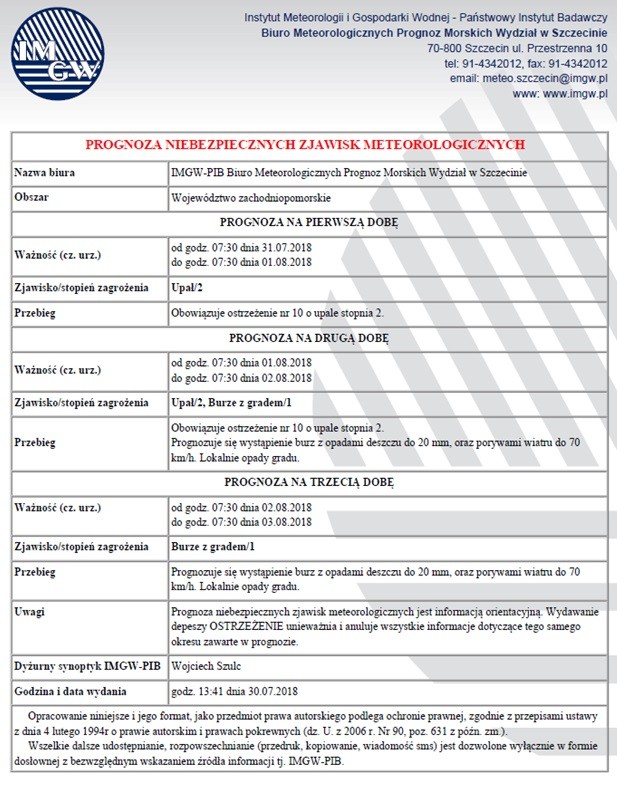 OSTRZEŻENIE PRZED UPAŁAMI