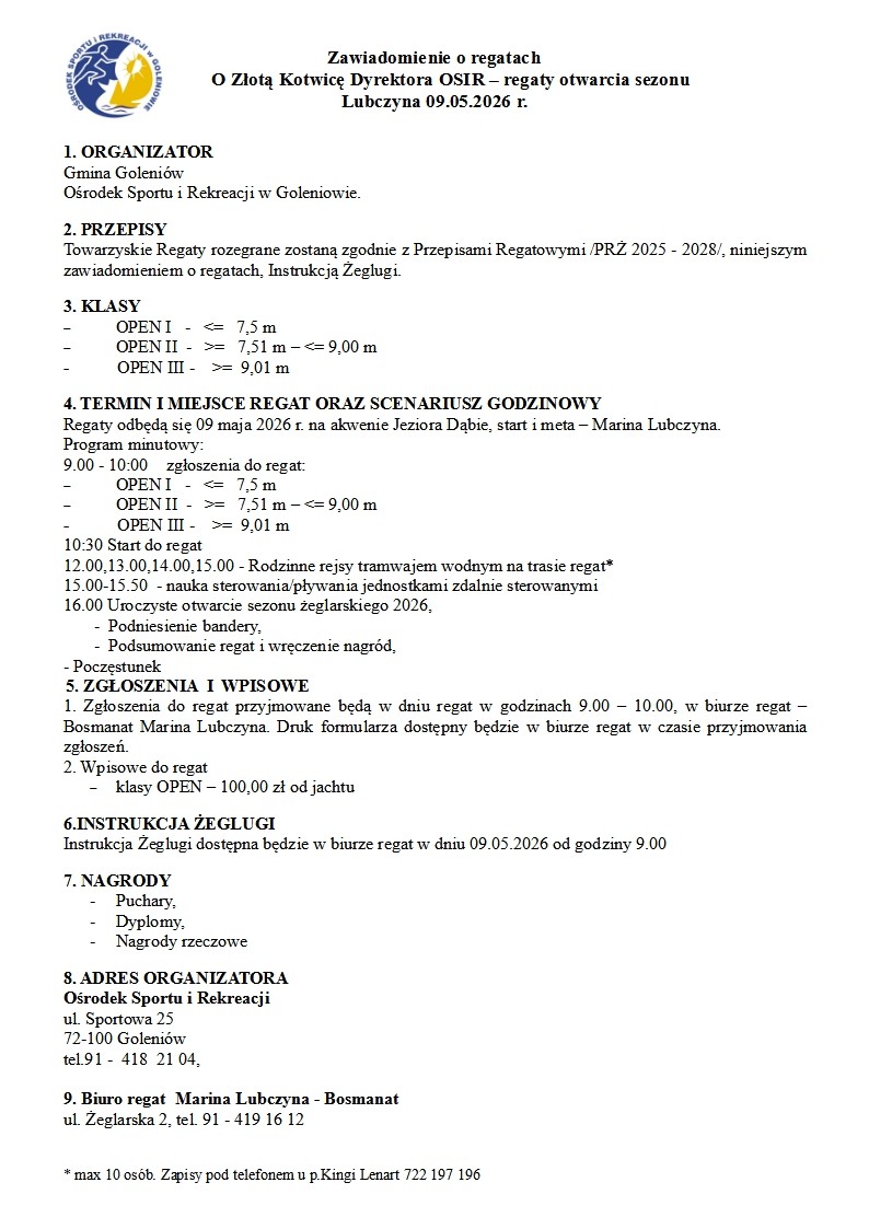 » Otwarcie sezonu żeglarskiego! Lubczyna 09.05.2026 r.