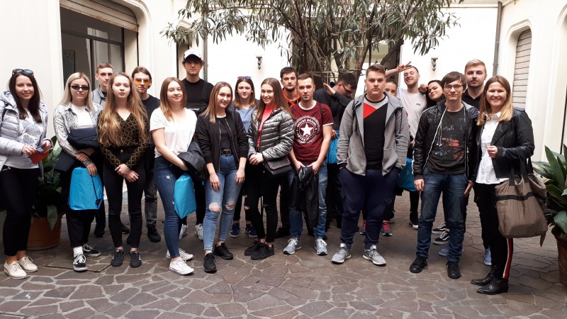 On March 25 we had a welcome meeting in the office of our hosting company SISTEMA TURISMO, whose main duty is organising student international mobility. Its aim is getting work experience, trainings and workshops for both students and adults. The meeting was led by Ms Katarzyna Gawronek – a specialist in the international cooperation department. During the meeting, the project participants got acquainted with the necessary documents, the mobility rules, the town maps and the public transport timetable. They also met their coordinators and visited the companies and hotels – places of their practice. After the meeting, we had a city tour. We could admire beautiful monuments like Arco d’Augusto, Piazza Tre Martiri and Museo Della citta.