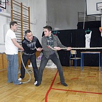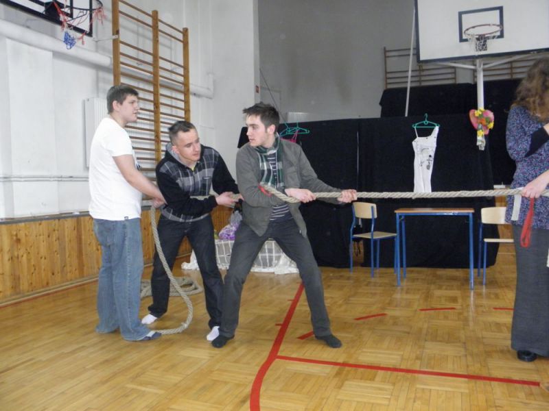 Nagrodą pocieszenia dla tych, którym się nie udało były słodkie upominki. Ci, którzy lubią słodycze stanęli do konkursu w szybkim jedzeniu ciastek. Na zakończenie można było zmierzyć się z nauczycielem WF-u w przeciąganiu liny.
