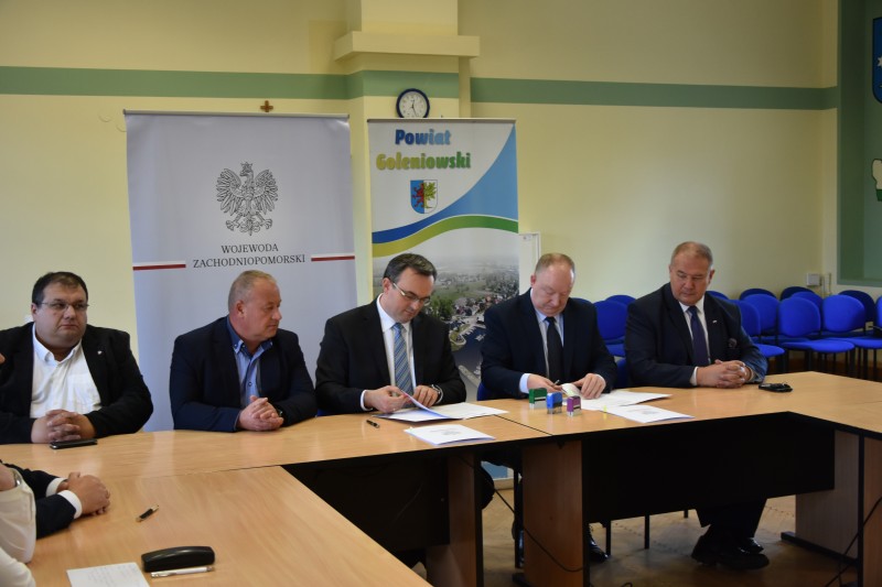 Obecni byli również przedstawiciele gmin z Powiatu Goleniowskiego, którzy również podpisali umowy na dofinanowanie - Wójt Gminy Przybiernów Lilla Ławicka, Burmistrz Gminy Goleniów Robert Krupowicz, Zastępca Burmistrza Gminy Stepnica Ryszard Ławicki oraz Burmistrz Gminy Nowogard Robert Czapla.