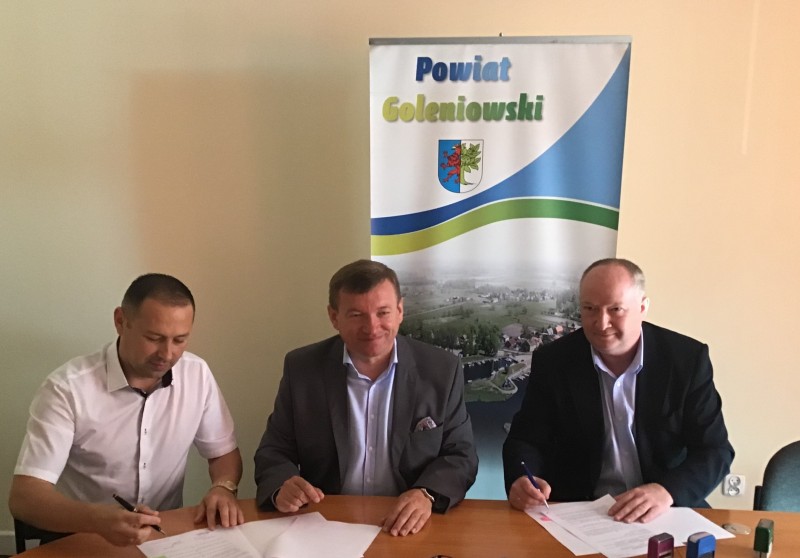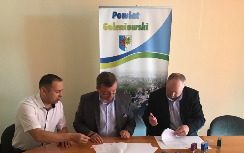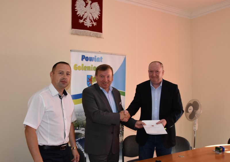 W dniu 24 lipca 2019 r. w budynku Starostwa Powiatowego w Goleniowie, Starosta Goleniowski Tomasz Stanisławski, Wicestarosta Goleniowski Tomasz Kulinicz oraz Wicemarszałek Województwa Zachodniopomorskiego Jarosław Rzepa podpisali umowę na dofinansowanie zadania pn.: "Modernizacja trybun w obiekcie hali sportowej Zespołu Szkół nr 1 w Goleniowie przy ul. Niepodległości 1".