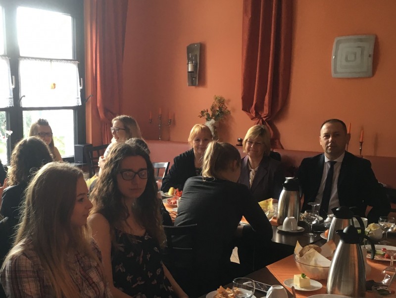 W trakcie wizyty podsumowano udział naszych uczniów w stażach i stwierdzono, iż wszyscy pracodawcy pozytywnie wypowiadają się na temat naszych młodych pracowników. Staże odbyły się w dniach 08.01 do 04.02.2017 r. grupa 18 uczniów oraz 05.03. do 01.04.2017r. grupa 19 uczniów. Całość kosztów pokryta była z dofinansowania uzyskanego z Programu Operacyjnego Wiedza Edukacja Rozwój. Rozmowy przebiegły w partnerskiej atmosferze, zakończone merytorycznym podsumowaniem oraz omówieniem kolejnych wspólnych działań w jakich obie strony wezmą udział. Jesienią br. planowany jest wyjazd następnej grupy stażystów.