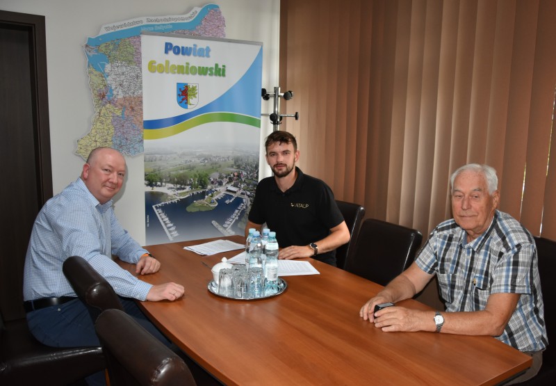 Dziś Starosta Goleniowski Tomasz Stanisławski oraz Wicestarosta Tomasz Kulinicz podpisali umowę na "Poprawę efektywności energetycznej obiektów użyteczności publicznej dla budynku Pływalni Fala w Goleniowie".