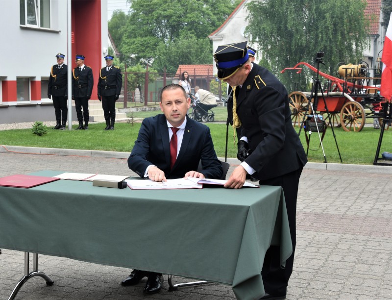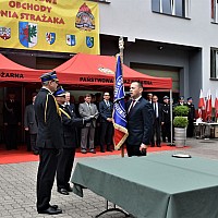 Obchody poprzedzone były nabożeństwem w Kościele pw. św. Katarzyny w Goleniowie. Po mszy nastąpił przemarsz z towarzyszeniem orkiestry dętej „Wood & Brass Band" na plac przed Komendą Powiatową Państwowej Straży Pożarnej, gdzie odbyła się główna część uroczystości. W pierwszej części obchodów nastąpiło nadanie sztandaru dla KP PSP w Goleniowie ufundowanego przez Komitet Fundacji Sztandaru pod przewodnictwem Starosty Goleniowskiego, które zostało poprzedzone wbiciem pamiątkowych gwoździ w drzewiec sztandaru oraz wpisami do księgi pamiątkowej. Na gwoździach pamiątkowych wygrawerowano inicjały osób i instytucji szczególnie zasłużonych dla fundacji sztandaru.