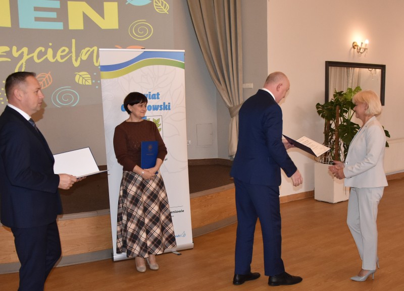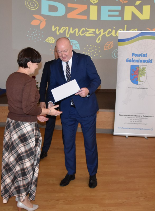 W uroczystym spotkaniu udział wzięli dyrektorzy szkół i placówek oświatowych prowadzonych przez Powiat Goleniowski oraz nauczyciele, którzy otrzymali Nagrodę Starosty Goleniowskiego. Wszystkim uczestnikom życzymy dużo zdrowia i wytrwałości oraz licznych sukcesów zawodowych i społecznego uznania.