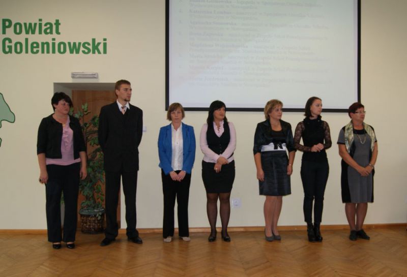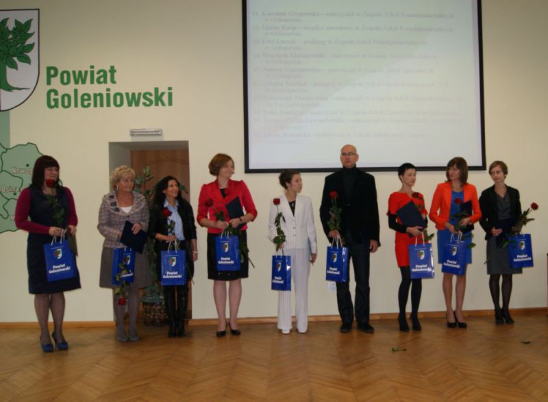W dniu 11 października 2012 r. w Starostwie Powiatowym w Goleniowie odbyło się spotkanie z okazji Dnia Edukacji Narodowej. W spotkaniu uczestniczyli między innymi nauczyciele rozpoczynający swoją pierwszą pracę, nauczyciele, którzy uzyskali stopień awansu zawodowego nauczyciela mianowanego i dyplomowanego oraz nauczyciele, którzy otrzymali Nagrodę Starosty Goleniowskiego.