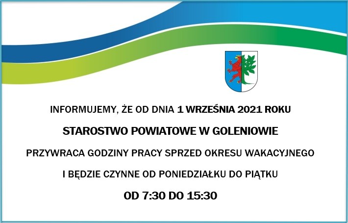 » Powrót do standardowych godzin pracy Starostwa Powiatowego w Goleniowie