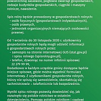 Najbliższy Powszechny Spis Rolny będzie prowadzony w całej Polsce od 1 września do 30 listopada 2020 r., według stanu w dniu 1 czerwca 2020 r.