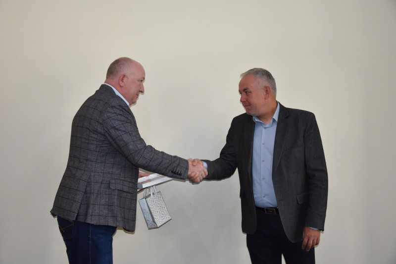 Starosta Goleniowski Tomasz Stanisławski w imieniu całego Zarządu Powiatu podziękował Panu Dyrektorowi za lata zaangażowania, pasji i pracy na rzecz młodzieży oraz społeczności szkolnej. Na zakończenie spotkania przekazano symboliczne podziękowania wraz z drobnym upominkiem.