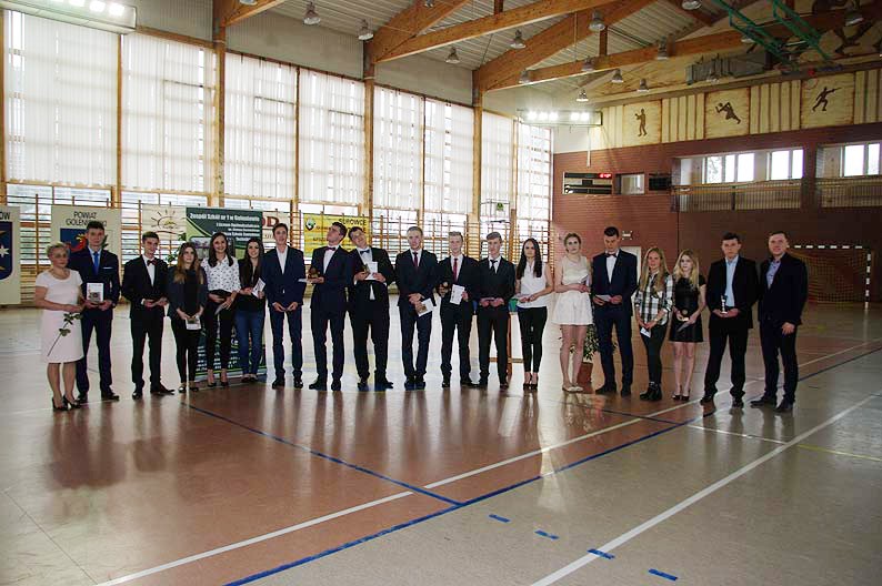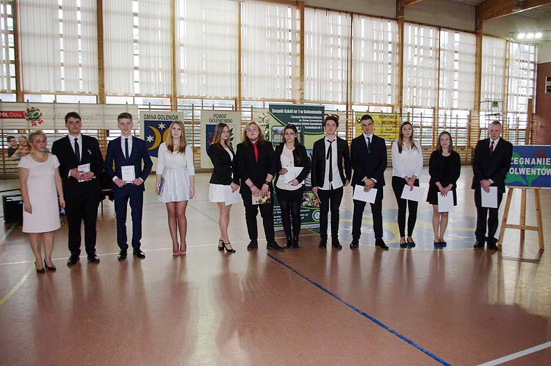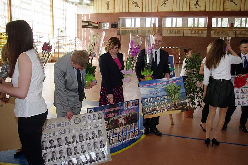 29 kwietnia na hali widowiskowo-sportowej przy ulicy Niepodległości odbyło się uroczyste zakończenie roku szkolnego uczniów klas trzecich liceum oraz czwartych technikum w Zespole Szkół nr 1 w Goleniowie. Uroczystość zaszczycili swą obecnością zaproszeni goście: pani Anna Buryszek-Stępień, Sekretarz Powiatu Goleniowskiego, pan Zbigniew Mazur, Skarbnik Powiatu Goleniowskiego, ksiądz Rafał Hoczek - Proboszcz Parafii pw. Św. Katarzyny w Goleniowie, przedstawiciele Rady Rodziców przy ZS nr 1, dyrekcja szkoły, grono pedagogiczne, uczniowie i ich rodzice.