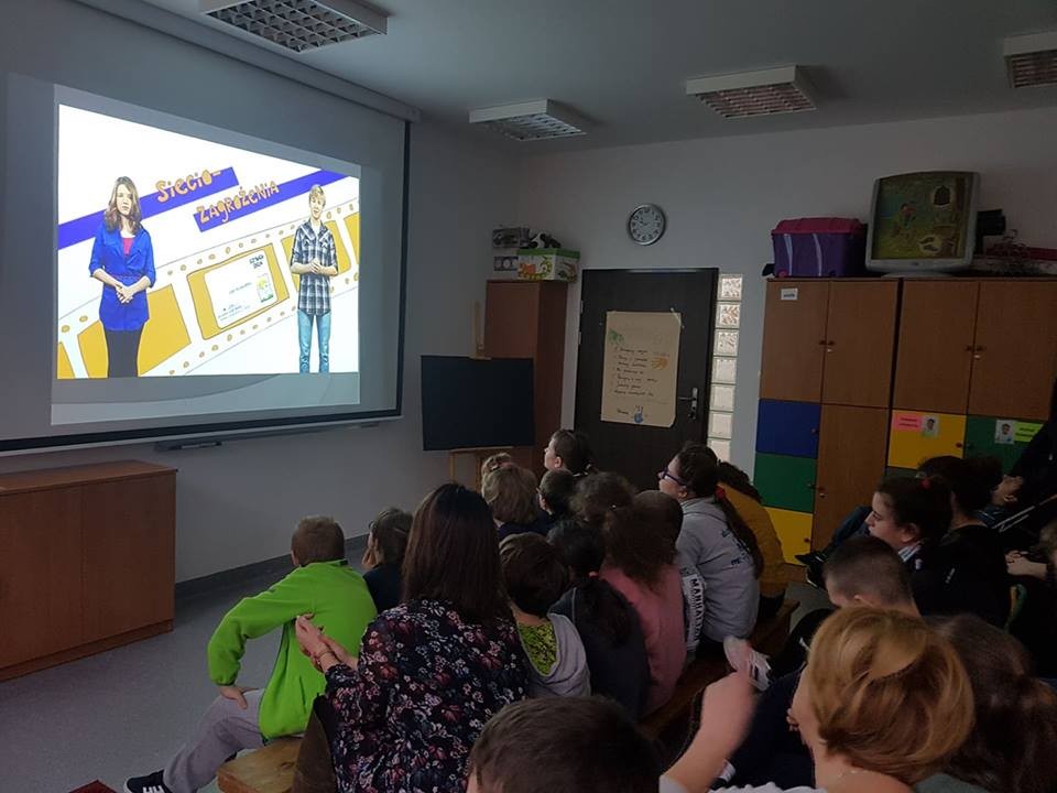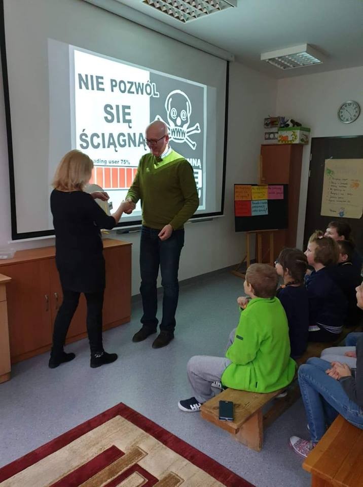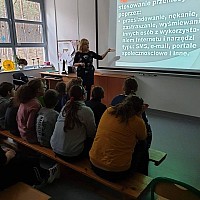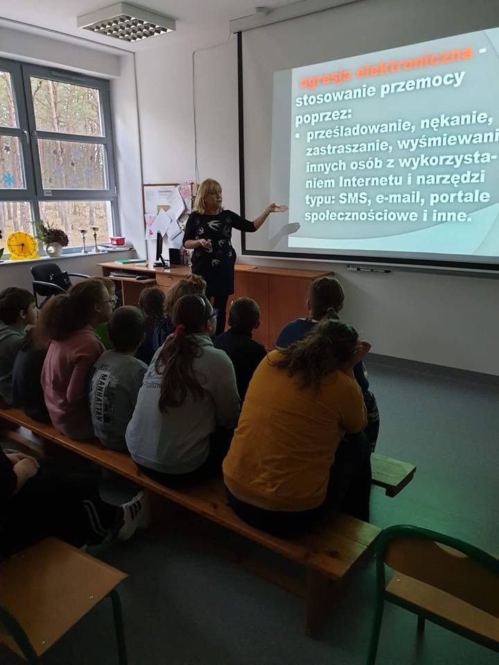"Uświadomienie uczniom zagrożeń wynikających z Cyberprzemocy" to tytuł prelekcji w ramach działań profilaktycznych, w której 1 marca br. uczestniczyli uczniowie klas młodszych Zespołu Szkół w Goleniowie. Prelekcja przygotowana przez panią Dorotę Baczewską miała na celu kształtowanie postaw świadomego i odpowiedzialnego korzystania z zasobów internetowych. Na zakończenie, każdy uczeń otrzymał plakietkę z adresem - Sieciaki.pl Jest to serwis internetowy dla dzieci poświęcony edukacji w zakresie bezpieczeństwa w internecie.