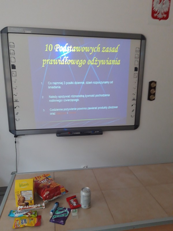 W dniu 26.10.2018r. w Zespole Szkół w Goleniowie odbyła się prelekcja pt. „Jedz zdrowo, żyj zdrowo”. W lekcji uczestniczyły klasy szkoły podstawowej IV-VIII. Celem głównym było zapoznanie uczniów z zasadami racjonalnego odżywiania się oraz kształtowanie umiejętności oceniania własnego sposobu żywienia. W trakcie prelekcji przedstawiona została ciekawa prezentacja, która ułatwiła uczestnikom zrozumienie podstawowych zasad odżywiania oraz wyjaśniła znaczenie składników pokarmowych niezbędnych dla prawidłowego rozwoju i funkcjonowania organizmu. Uczniowie bardzo aktywnie analizowała skład produktów spożywczych zapisany na opakowaniach tych produktów. Mieli możliwość wypowiedzenia się na temat własnych nawyków żywieniowych "Co jemy i do jakiego jedzenia jesteśmy namawiani?" oraz wymieniali potrawy i produkty zjadane najczęściej przez ich rodziny. Uczniowie bardzo aktywnie uczestniczyli w prelekcji.