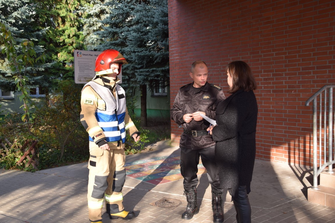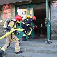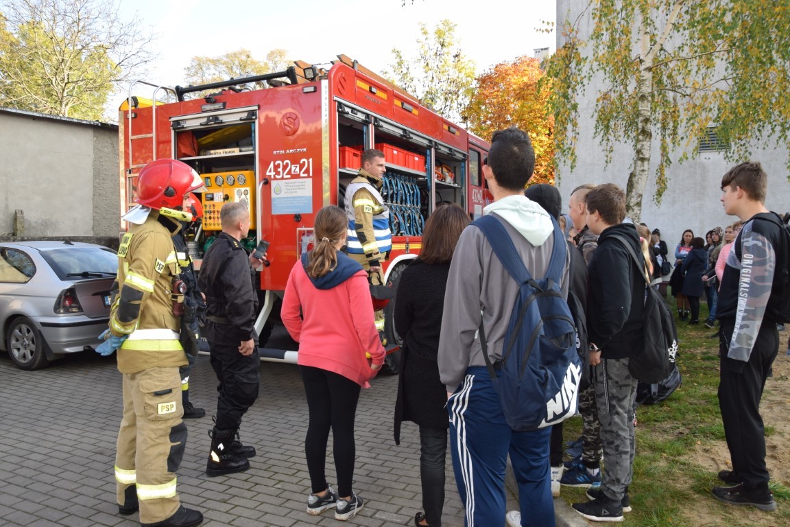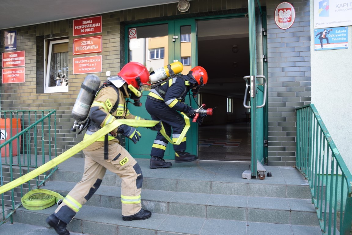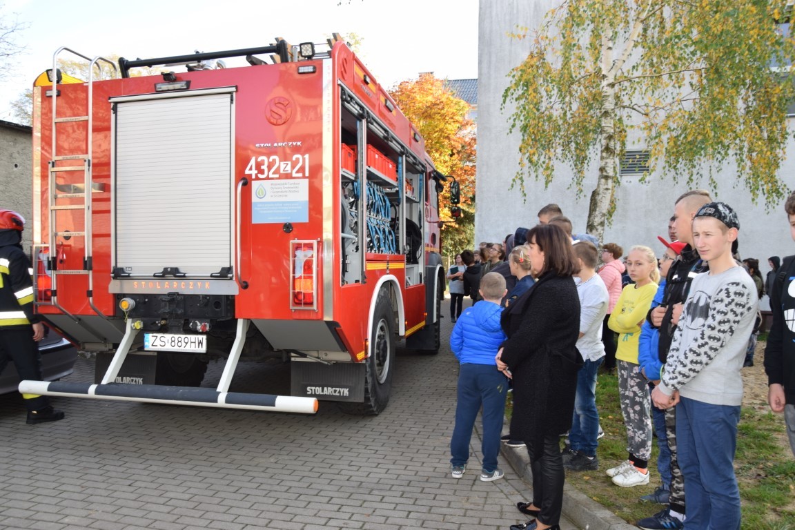 W dniu 23 października 2019r. w Ośrodku Szkolno-Wychowawczym w Nowogardzie przeprowadzony został próbny alarm przeciwpożarowy. Ćwiczenia przeprowadzono przy współpracy z Komendą Powiatową Straży Pożarnej w Goleniowie oraz Jednostką Ratowniczo-Gaśniczą w Nowogardzie. Akcja ewakuacyjna została przeprowadzona bardzo sprawnie, wszyscy wychowankowie i pracownicy szybko wydostali się z budynku, pomimo dużego zadymienia, a strażacy przybyli na miejsce w kilka minut. Uczniowie zostali poinformowani przez panów strażaków o podstawowych zasadach zachowania podczas wystąpienia pożaru i mieli okazję obejrzeć wóz strażacki. Bardzo dziękujemy Komendzie Powiatowej Straży Pożarnej w Goleniowie i Jednostce Ratowniczo-Gaśniczej w Nowogardzie za pomoc w sprawnie przeprowadzonej akcji ewakuacyjnej, która okazała się bardzo pouczająca dla naszych wychowanków.