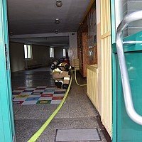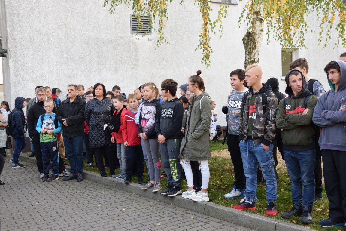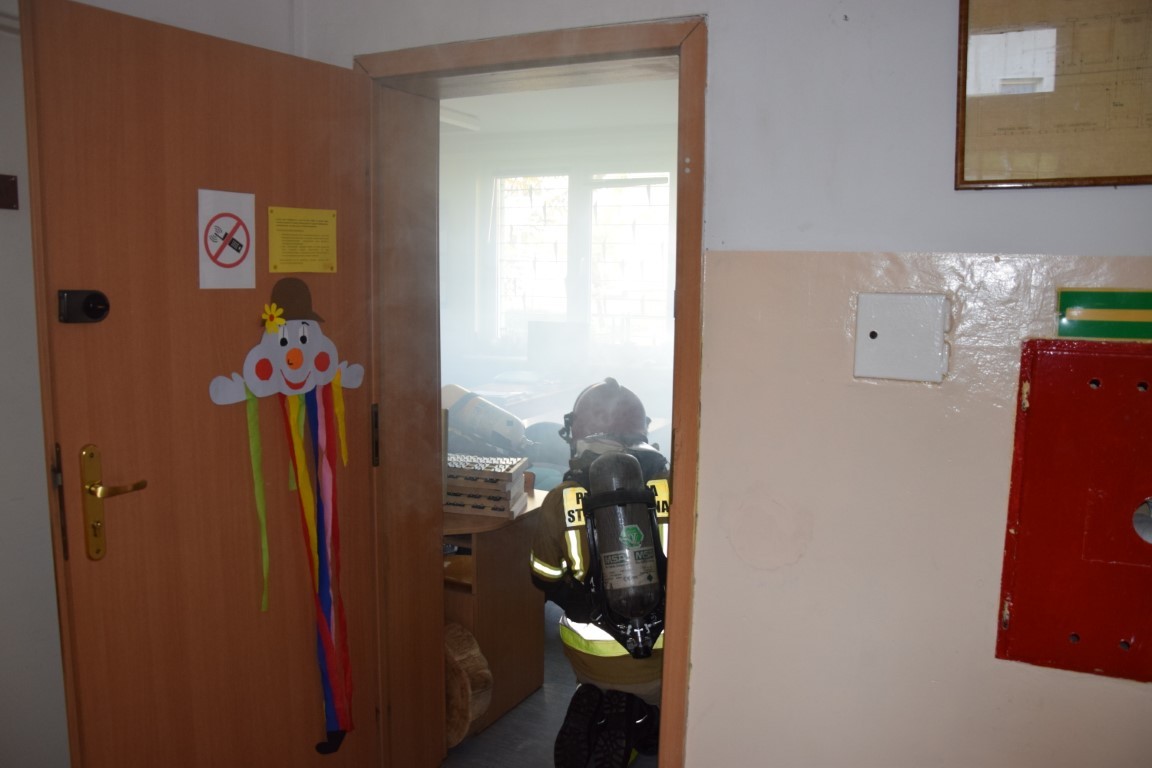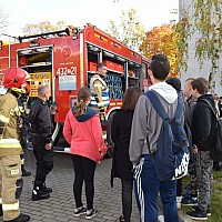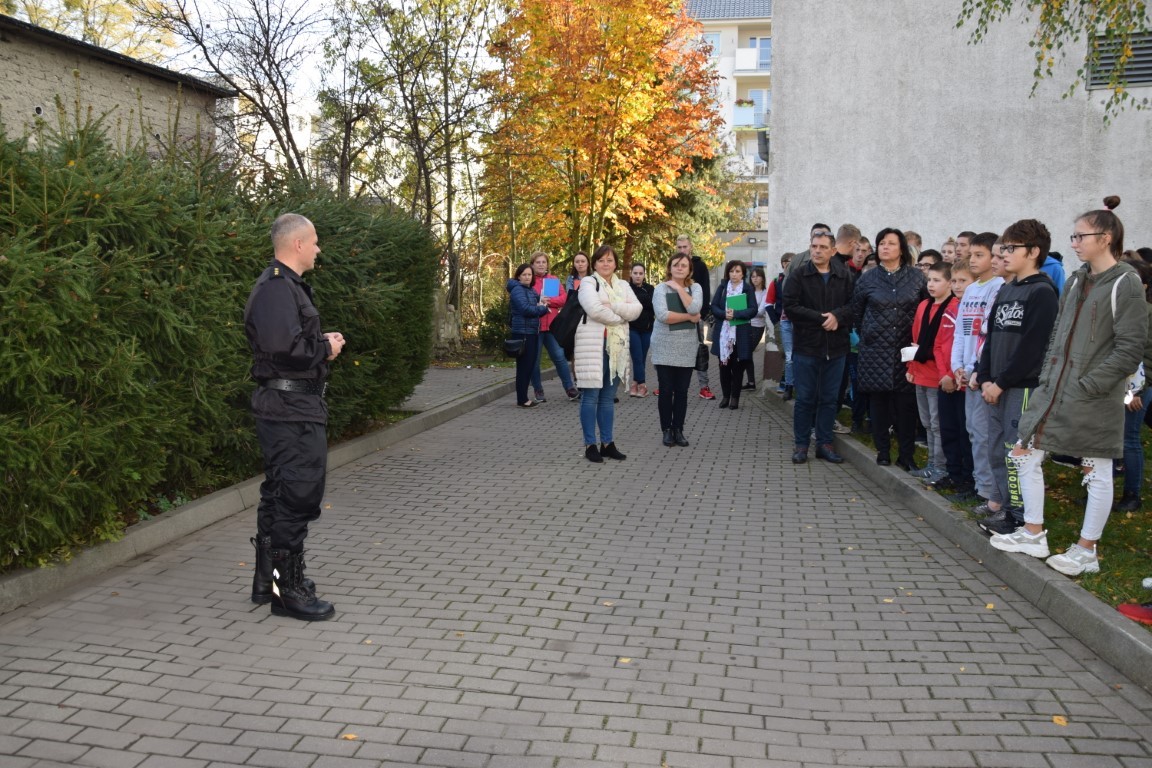 W dniu 23 października 2019r. w Ośrodku Szkolno-Wychowawczym w Nowogardzie przeprowadzony został próbny alarm przeciwpożarowy. Ćwiczenia przeprowadzono przy współpracy z Komendą Powiatową Straży Pożarnej w Goleniowie oraz Jednostką Ratowniczo-Gaśniczą w Nowogardzie. Akcja ewakuacyjna została przeprowadzona bardzo sprawnie, wszyscy wychowankowie i pracownicy szybko wydostali się z budynku, pomimo dużego zadymienia, a strażacy przybyli na miejsce w kilka minut. Uczniowie zostali poinformowani przez panów strażaków o podstawowych zasadach zachowania podczas wystąpienia pożaru i mieli okazję obejrzeć wóz strażacki. Bardzo dziękujemy Komendzie Powiatowej Straży Pożarnej w Goleniowie i Jednostce Ratowniczo-Gaśniczej w Nowogardzie za pomoc w sprawnie przeprowadzonej akcji ewakuacyjnej, która okazała się bardzo pouczająca dla naszych wychowanków.