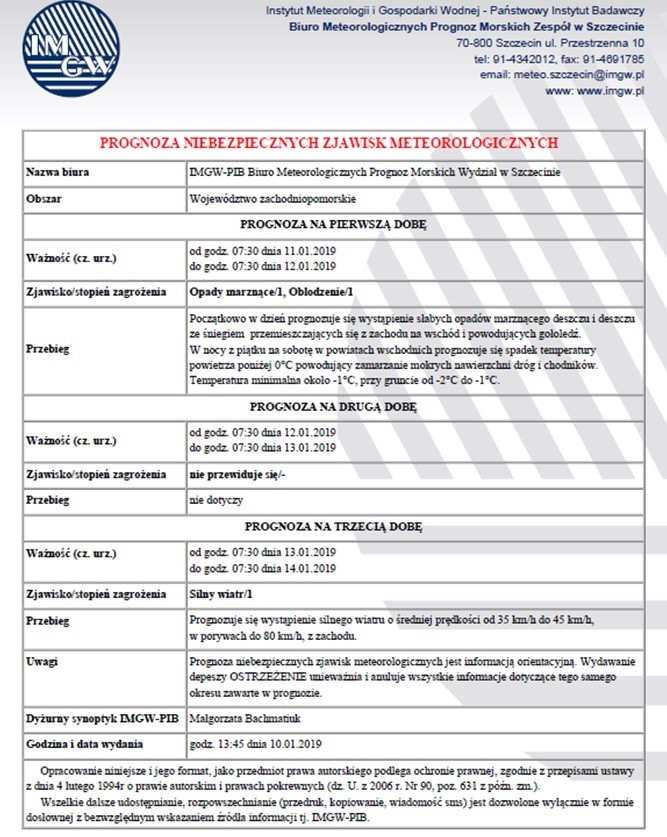 PROGNOZA NIEBEZPIECZNYCH ZJAWISK METEOROLOGICZNYCH