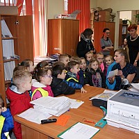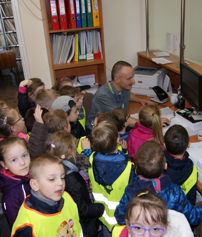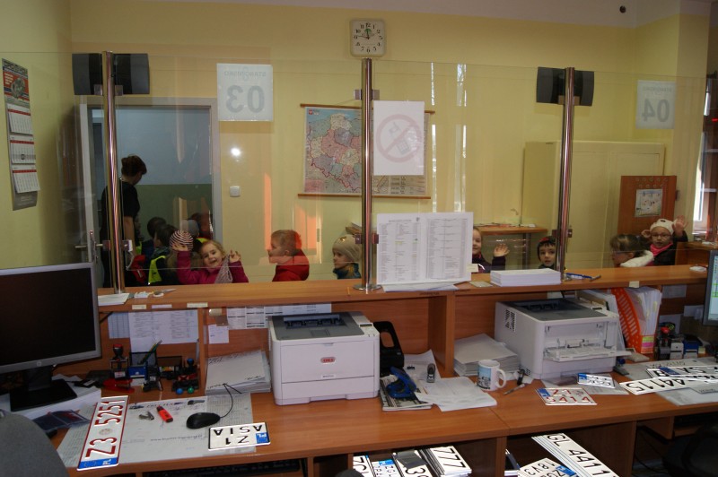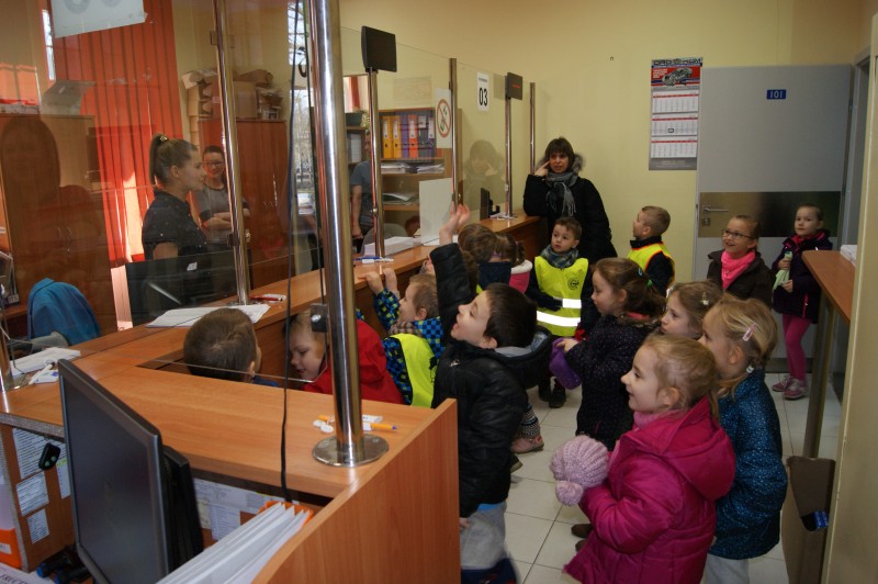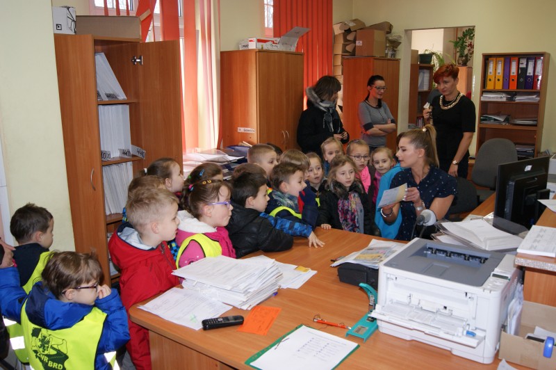 Dzieci zwiedziły część budynku Straostwa Powiatowego w Goleniowie przy ulicy Dworcowej oraz poznały z bliska pracę Wydziału Komunikacji.