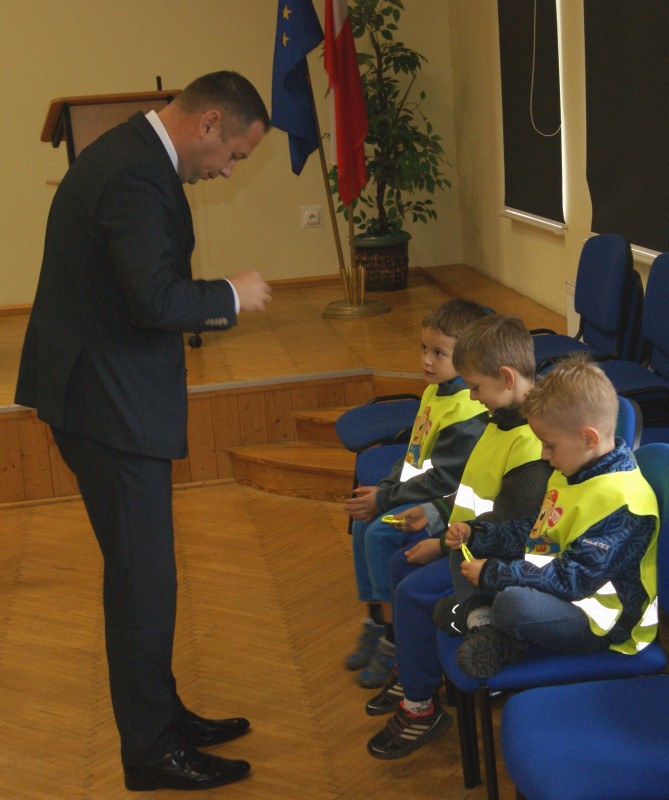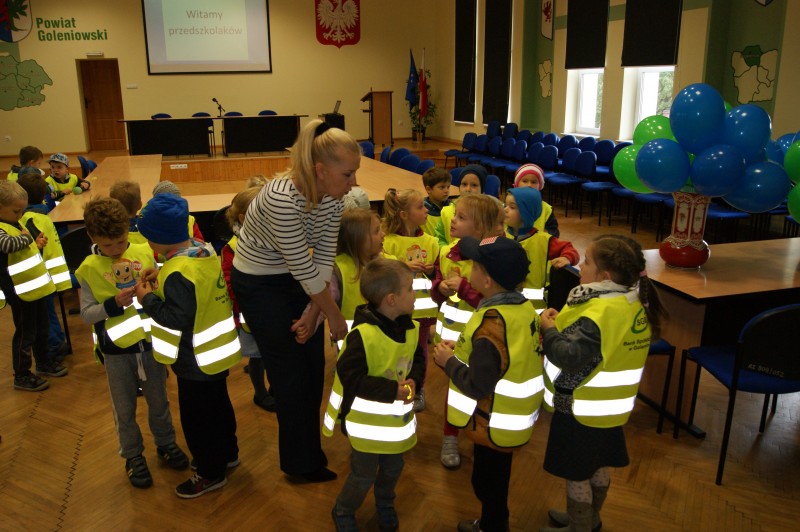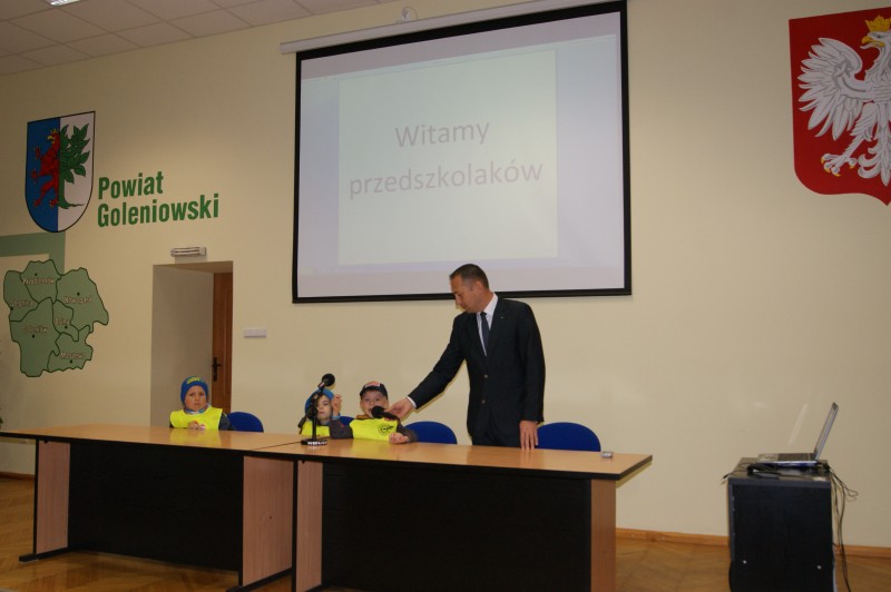 W środę 7 października, Starostwo Powiatowe w Goleniowie odwiedziła grupa pięciolatków z Przedszkola Publicznego im. Wandy Chotomskiej w Goleniowie. Na sali sesyjnej przedszkolaków przywitał Starosta Goleniowski Tomasz Kulinicz. W kilku słowach opisał dzieciom zadania Powiatu i to jaki ma wpływ na codzienne życie ich i ich rodziców. Następnie starosta rozdał dzieciom odblaskowe breloki, żeby zawsze pamiętały o bezpieczeństwie i byciu widocznym na drodze.