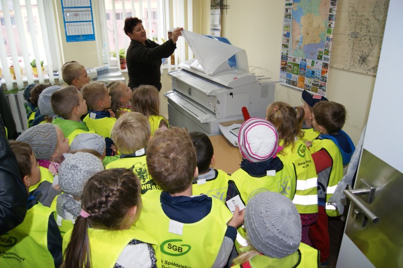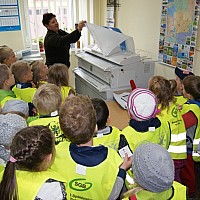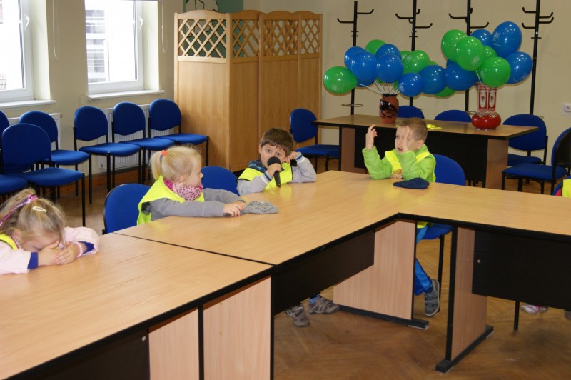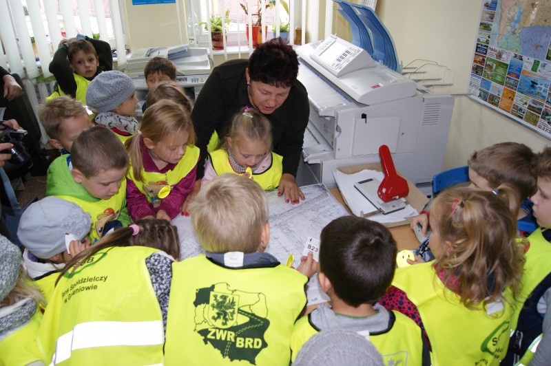 Drugim punktem wizyty był Wydziału Komunikacji, gdzie dzieci dowiedziały się jak zdobyć prawo jazdy oraz jak zarejestrować samochód.