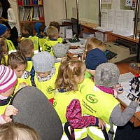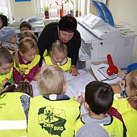 Ostatnim punktem tych sympatycznych odwiedzin był Wydział Geodezji, Kartografii i Katastru, gdzie największe zainteresowanie dzieci wzbudziły wielkoformatowe mapy, których kserokopie otrzymały do pokolorowania w przedszkolu.