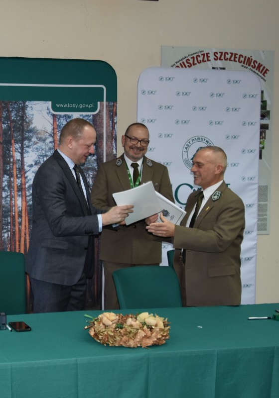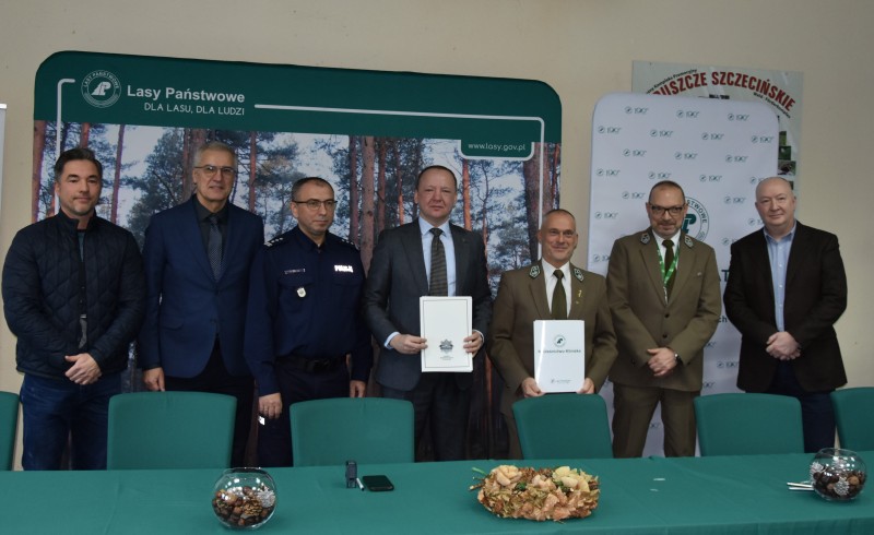 Umowę podpisali przedstawiciele Regionalnej Dyrekcji Lasów Państwowych w Szczecinie oraz Komendy Wojewódzkiej Policji w Szczecinie. W wydarzeniu wziął udział Starosta Goleniowski Tomasz Stanisławski oraz samorządowcy Gminy Goleniów.