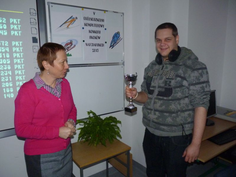 Styczniowe eliminacje wyłoniły trzynastu uczestników ścisłego finału – dziesięcioro uczniów i troje nauczycieli. Wszyscy finaliści spotkali się w pracowni komputerowej, na wielkim finale V Szkolnego Komputerowego Konkursu Skoków Narciarskich. Licznie zgromadzona widownia mogła obserwować występy finalistów na tablicy multimedialnej znajdującej się w pracowni. Zmagania były bardzo pasjonujące, do ostatnich chwil ważyło się turniejowe zwycięstwo w kategorii uczniów. Ostatecznie wygrał Mariusz Michalski przed Piotrem Andrzejczakiem i Mateuszem Sikorą. Wśród nauczycieli triumfował Pan Remigiusz Skierski; kolejne miejsca przypadły Jerzemu Ratajczakowi i Wojciechowi Maciejewskiemu. Bezpośrednio po zakończeniu zawodów Pani dyrektor Marzanna Gąsior wręczyła zwycięzcy konkursu, Mariuszowi Michalskiemu, puchar ufundowany przez Starostę Powiatu Goleniowskiego.