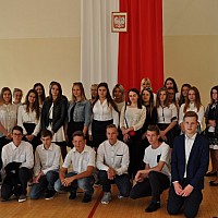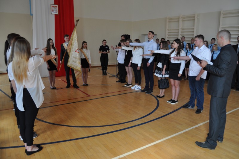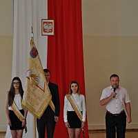 Kolejnym punktem apelu było uroczyste ślubowanie uczniów klas pierwszych, ślubowanie na sztandar złożyli, uczniowie, którzy podczas rekrutacji uzyskali najwyższą liczbę punktów. Zaprezentowani zostali także uczniowie, którzy w ubiegłym roku szkolnym uzyskali znaczące osiągniecia w dziedzinie naukowej, sportowej lub społecznej.