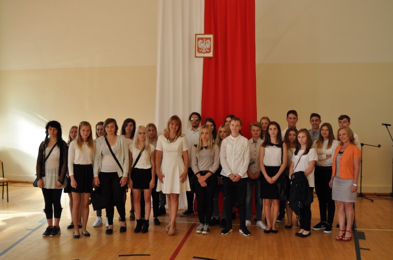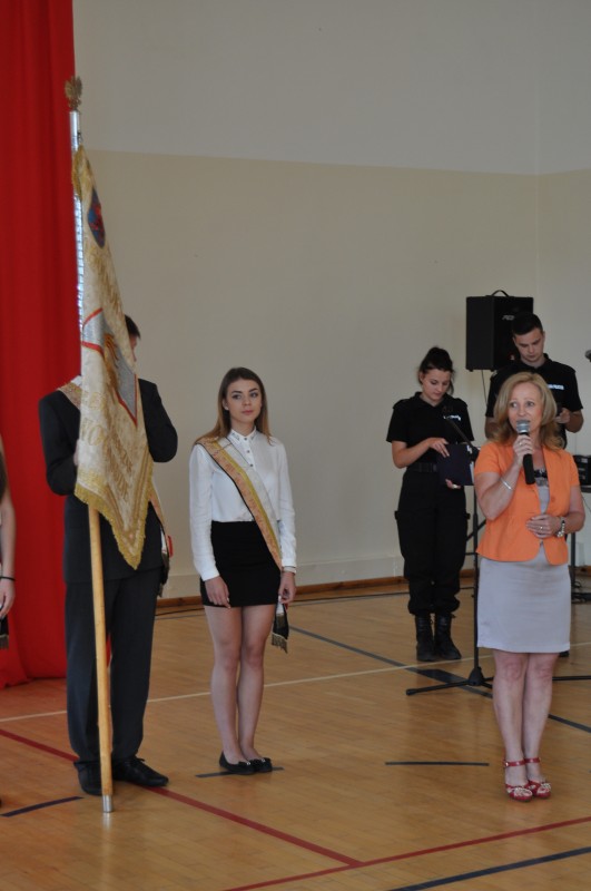 Pani dyrektor Karina Surma po wakacyjnej przerwie powitała wszystkich nauczycieli, rodziców oraz całą społeczność uczniowską. Szczególnie ciepło powitała nowych nauczycieli, panią Natalię Szurgot – nauczycielkę języka angielskiego, panią Agnieszkę Neryng – nauczyciela edukacji ratowniczo-medycznej oraz pana Piotra Mońkę – nauczyciela wychowania fizycznego. Uczniom klas pierwszych podziękowała z wybór właśnie naszej szkoły, zaś klasom maturalnym życzyła owocnych przygotowań do egzaminu maturalnego, który już za 8 miesięcy.