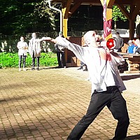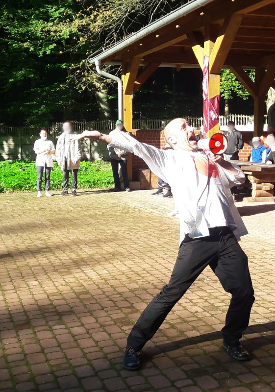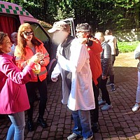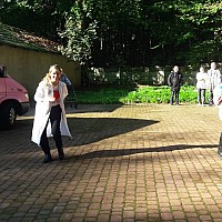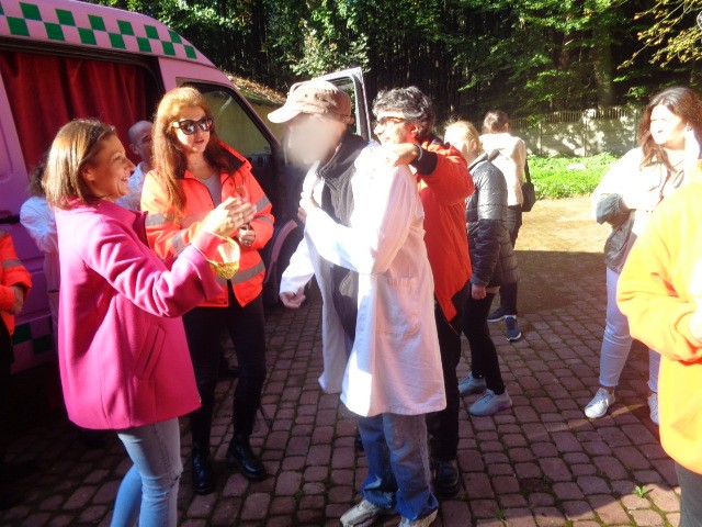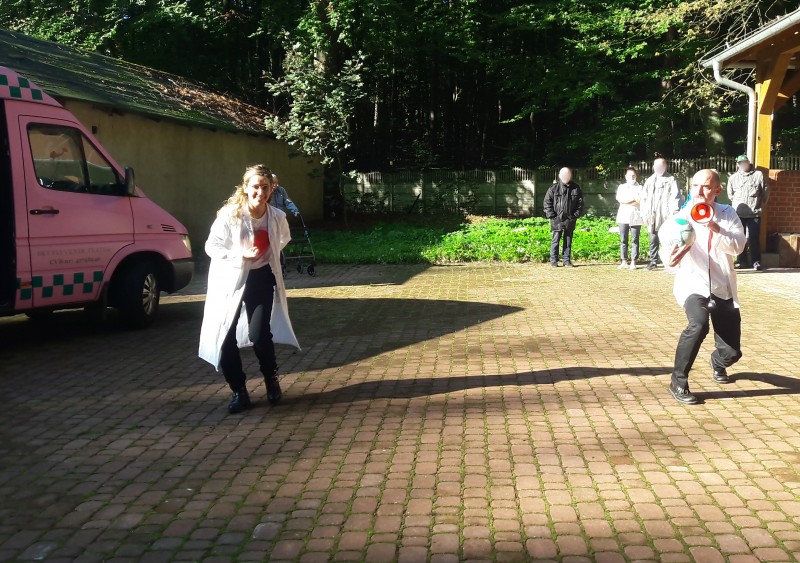 W październiku br. w ramach projektu artyści pokonując trasę po czterech krajach Unii Europejskiej na pokładzie swojego artbulansu, dzielili się refleksjami na temat zdrowych wartości demokratycznych i jedności Europy. Zawitali do Goleniowa, ale przy okazji odwiedzili mieszkańców naszego Domu. Przedstawili spektakl wg własnej aranżacji, przy tym zachęcając do udziału mieszkańców i personel Domu. Na zakończenie mieszkaniec Domu Pan Krzysztof, wręczył wykonaną przez siebie pracę plastyczną. Ku zdziwieniu wszystkich został zaproszony do grona artystów, poprzez założenie białego fartucha medycznego. Było mnóstwo radości i uśmiechu na twarzach wszystkich, za co serdecznie dziękujemy. Podziękowania dla Pana Daniela Jacewicza z Teatru Brama z Goleniowa za pomoc w organizacji spotkania.