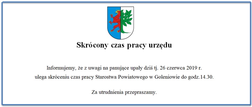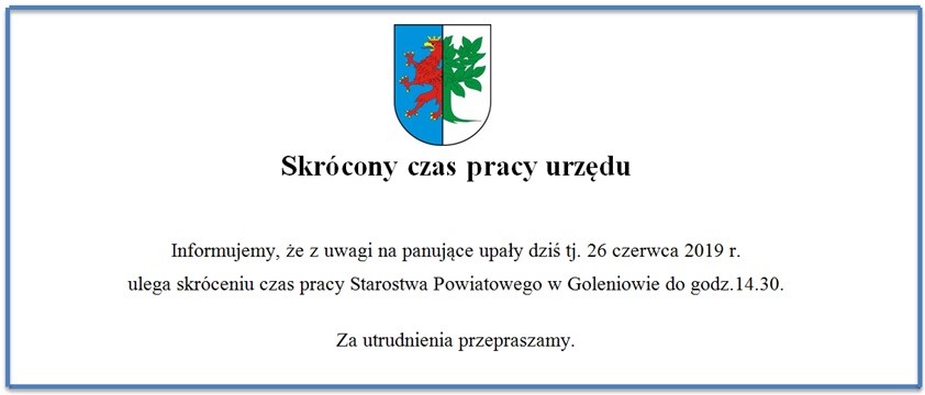 » Skrócony czas pracy Starostwa Powiatowego w Goleniowie
