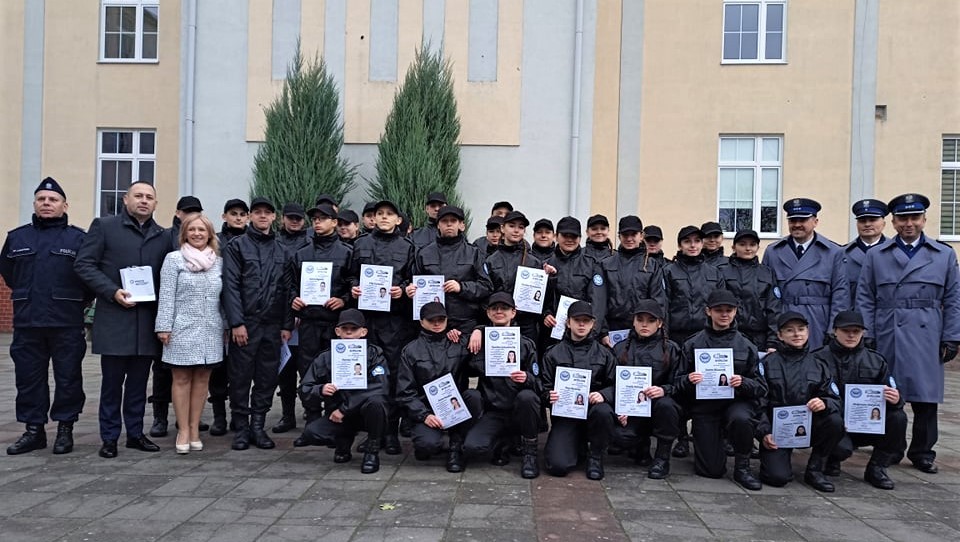 Uczniowie klasy policyjnej po złożonym ślubowaniu otrzymali pamiątkowe dyplomy. Miłym dla szkoły wyróżnieniem było przybycie absolwentów, którzy pełnią obecnie służbę w szeregach Policji. Na ręce pani dyrektor zostały złożone podziękowania od insp. Ryszarda Gana oraz Wicestarosty Goleniowskiego za kształcenie młodzieży oraz propagowanie klas mundurowych o profilu policyjnym na terenie naszego powiatu. Na zakończenie uroczystości uczniowie klasy III C zaprezentowali pokaz musztry paradnej.