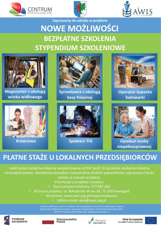 DNIA 26.03.2018r. O GODZ. 13.00 ODBĘDZIE SIĘ SPOTKANIE INFORMACYJNE DOTYCZĄCE KURSÓW I STAŻY W RAMACH PROJEKTU „NOWE MOŻLIWOŚCI” W ZESPOLE SZKÓŁ SPECJALNYCH W GOLENIOWIE PRZY UL.NIEPODLEGŁOŚCI 1B.