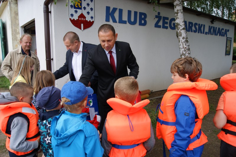 W piątek 31 lipca 2015 roku Starosta Goleniowski Tomasz Kulinicz wspólnie z Członkiem Zarządu Andrzejem Siwym uczestniczyli w spotkaniu z najmłodszymi zawodnikami Klubu Żeglarskiego "Knaga" z Nowogardu. Na przystani nad Jeziorem Nowogardzkim Starosta Tomasz Kulinicz wręczył młodym adeptom żeglarstwa kamizelki ratunkowe, które będą stanowiły ich zabezpieczenie podczas kolejnej edycji bezpłatnych zajęć żeglarskich "Junga & Kadet 2015", jakie w nowym sezonie Klub rozpocznie realizować.