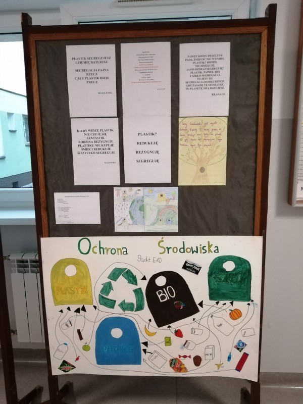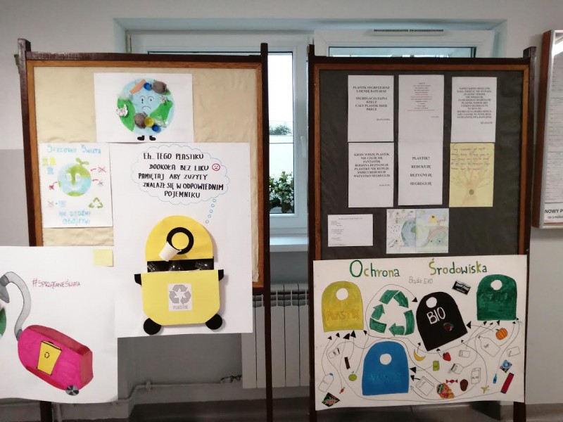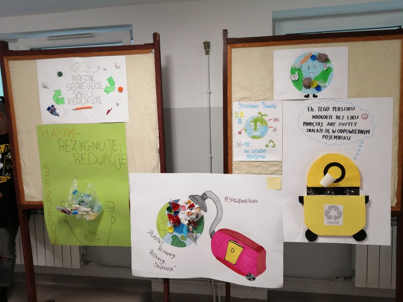 W tym roku szkolnym, w związku z pandemią, Sprzątanie Świata odbyło w naszej szkole w formie stacjonarnej w czasie lekcji wychowawczych.Uczniowie tworzyli tematyczne plakaty, wiersze, hasła, które nawiązywały do tegorocznego tematu: Plastik? Rezygnuję Redukuję Segreguję. Wystawa prac uczniowskich znajdowała się w holu szkoły i w zeszłym tygodniu mogli ją obejrzeć wszyscy chętni uczniowie i nauczyciele. Zachęcamy do segregowania odpadów!