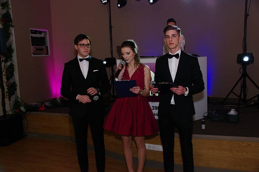 W sobotę 13 stycznia 2018 r. w Hotelu JF Duet odbył się długo wyczekiwany przez tegorocznych maturzystów Zespołu Szkół nr 1 w Goleniowie bal studniówkowy. To ważne wydarzenie, na które uczniowie czekają z niecierpliwością i bardzo starannie się do niego przygotowują. Odświętne stroje, gustowne makijaże i ślicznie dobrane fryzury świadczą o szczególnym charakterze tego spotkania. Tradycyjnie bal rozpoczęto częścią oficjalną, którą poprowadzili: Marta Kęsik, Karol Henkelman oraz Piotr Bartkowiak. Prowadzący powitali zaproszonych gości: Wicestarostę Powiatu Goleniowskiego Pana Tomasza Stanisławskiego, Przewodniczącą Rady Rodziców Panią Beatę Witkowską, dyrekcję szkoły, nauczycieli, rodziców oraz koleżanki i kolegów. Pani Dyrektor Małgorzata Wojtysiak życzyła wszystkim udanej zabawy i niezapomnianych wrażeń, po czym formułą: "Poloneza czas zacząć" oficjalnie rozpoczęła studniówkę. Tradycyjnie młodzież przepięknie odtańczyła poloneza. Następnie maturzyści wręczyli dyrekcji i wychowawcom kwiaty, dziękując im tym samym za trud edukacji i wychowania. Podziękowania i kwiaty odebrali również rodzice, bez których organizacja balu nie byłaby możliwa. Studniówka trwała do późnych godzin nocnych, wszyscy wspaniale się bawili. Z pewnością jeszcze długo będziemy ją wspominali.