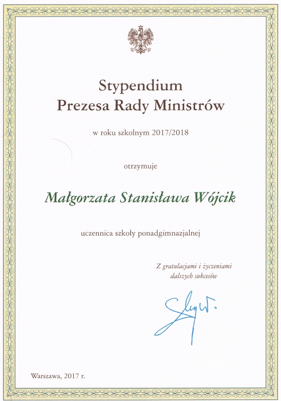 14 grudnia br., w Sali Rycerskiej Zachodniopomorskiego Urzędu Wojewódzkiego, odbyła się Uroczystość Wręczenia Dyplomów Stypendystom Prezesa Rady Ministrów. W uroczystości wziął udział Podsekretarz Stanu w Ministerstwie Edukacji Narodowej pan Maciej Kopeć. Gospodarzem uroczystości była Zachodniopomorski Kurator Oświaty pani Magdalena Zarębska – Kulesza.