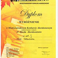 Adam Tarnożek uczeń Szkoły Muzycznej I stopnia w Goleniowie - z klasy 6 akordeonu Romana Rydza pierwszy raz uczestniczył w międzynarodowym konkursie i zdobył wyróżnienie.