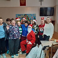 W ramach umowy wolontariackiej w roku 2023/2024 gościmy Wolontariuszy z I Liceum Ogólnokształcącego z Nowogardu. W sobotę było to wyjątkowe spotkanie z młodzieżą, albowiem w drodze do Domu spotkali św. Mikołaja, który zawitał w Nasze progi. Niespodzianka Wolontariuszom się udała, spotkanie odbyło się w fantastycznej atmosferze, na twarzach mieszkańców był uśmiech. Młodzież mogła dowiedzieć się od mieszkańców Domu o tradycjach świątecznych panujących w ich domach rodzinnych. Dziękujemy.