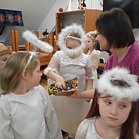 Mieszkańcy Domu Pomocy Społecznej z Nowogardu, początek tygodnia spędzili w iście świątecznej atmosferze. Odwiedzili Nas uczniowie Szkoły Podstawowej z Żabowa, przyjechali z życzeniami i upominkami świątecznymi dla naszych mieszkańców - aniołkami. Dyrekcja Domu również miała niespodziankę. Dyrekcja szkoły i uczniowie otrzymali upominki wykonane przez mieszkańców naszego Domu w ramach terapii zajęciowej. Serdecznie dziękujemy.
