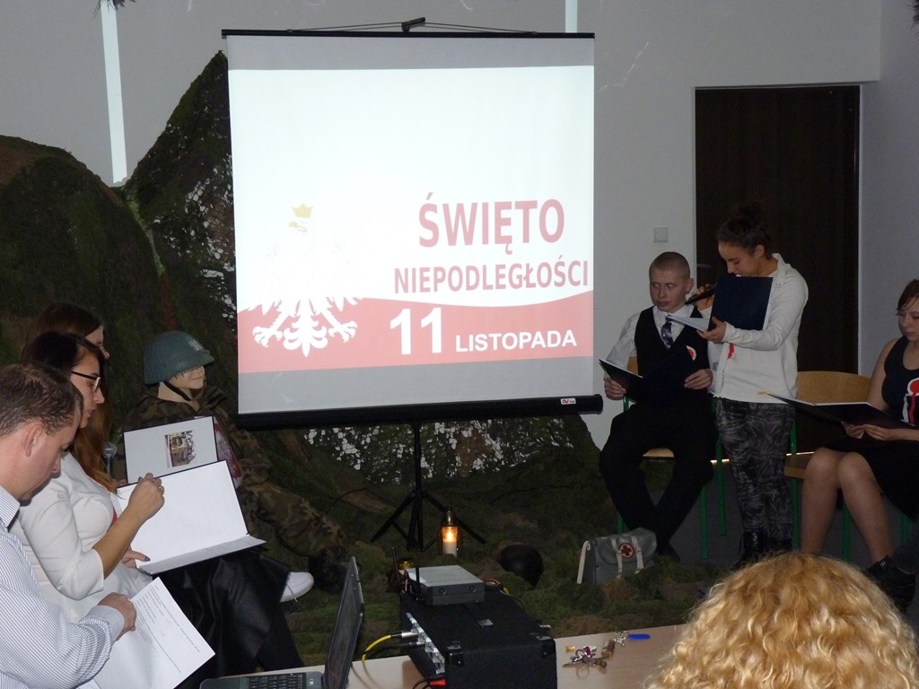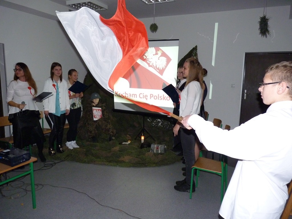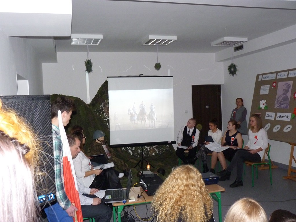 W dniu 10 listopada 2016 r. społeczność Zespołu Szkół uczciła 98 rocznicę odzyskania niepodległości przez Polskę. Nie zabrakło wspólnego śpiewania pieśni patriotycznych jak i wywołujących wzruszenia prezentacji fragmentów historii naszego kraju przygotowanych przez naszych uczniów. Całości dopełniła scenografia zaaranżowana przez nauczycieli przy współudziale uczniów szkoły. Uczniowie z zaciekawieniem wysłuchali przedstawienia. Na twarzach widzów nieprzerwanie dostrzec można było zainteresowanie treścią przygotowanego montażu słowno-filmowo-muzycznego. Dzięki takiej lekcji patriotyzmu najmłodsze pokolenia miały okazję uświadomić sobie, że warto również dziś kultywować pamięć o przodkach, interesować się rodzimą kulturą, historią, a godło, flaga i hymn są od wieków najpiękniejszymi symbolami naszej polskości, dumy i tożsamości.