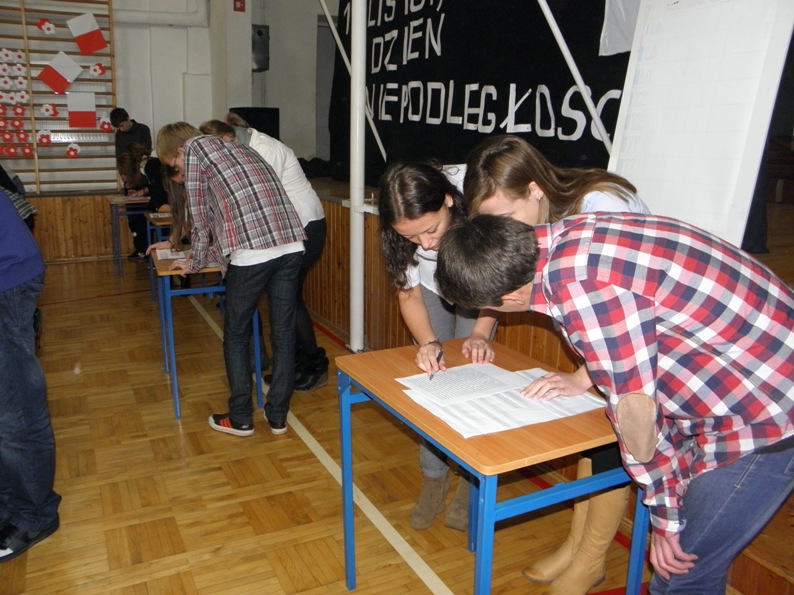 9 listopada w Zespole Szkół Ponadgimnazjalnych w Maszewie młodzież ze swoimi pedagogami uczciła Święto Niepodległości. Nie było na apelu patriotycznych wierszy, za to przy patriotycznych piosenkach młodzież pokazywała jak korzysta dzisiaj z wolności, jak zna historię swojego kraju i tych, którzy walczyli o odzyskanie niepodległości i rozwój naszego kraju. Najlepsze klasy otrzymały nagrody od Dyrektora.