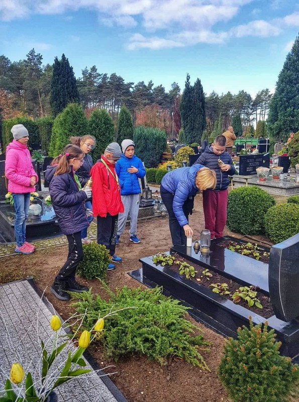 W ramach akcji MEN "Szkoła pamięta" uczniowie Szkoły Podstawowej z klas: 2ac, 3bc i 5b wchodzących w skład Zespołu Szkół w Goleniowie, odwiedzili na cmentarzu komunalnym w Goleniowie groby osób zasłużonych i cenionych w goleniowskiej społeczności. Te szczególne dni skłaniają nas do zadumy i refleksji nad ludźmi, których już nie ma wśród nas, a którzy ze względu na swoje czyny zdobyli szacunek i uznanie. Uczniowie posprzątali bezimienne i opuszczone groby, a na mogiłach zapalili znicze. #Szkoła pamięta!