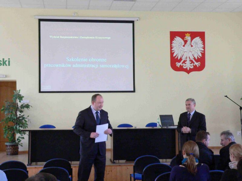 Na szkoleniu Dyrektor Wydziału Zarządzania Kryzysowego Ryszard Faryniarz scharakteryzował zadania administracji publicznej na szczeblu powiatu i gminy w zakresie obronności oraz przedstawił zasady opracowania nowych kart zadań operacyjnych.