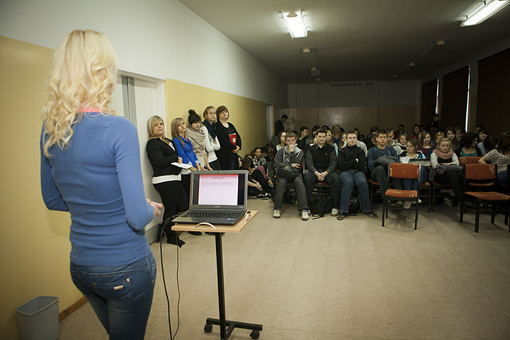 Od samego rana, przy wejściu do szkoły, uczennice z klasy IID rozdawały nauczycielom i uczniom różowe wstążeczki - symbol solidarności ze wszystkimi, którym bliska jest tematyka związana z chorobami nowotworowymi piersi. W tym dniu, uczniowie liceum uczestniczyli w prelekcji na temat profilaktyki raka piersi oraz profilaktyki HIV, przygotowanej przez ich kolegów i koleżanki. Młodzież szkolna miała również możliwość zapoznania się z wystawą prac, plakatów związaną z tą tematyką, przygotowaną na szkolnym korytarzu.