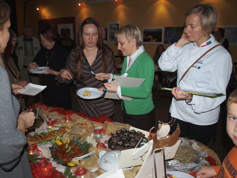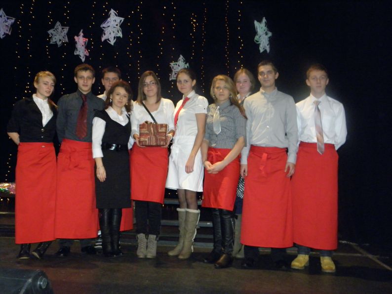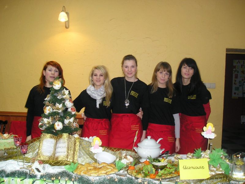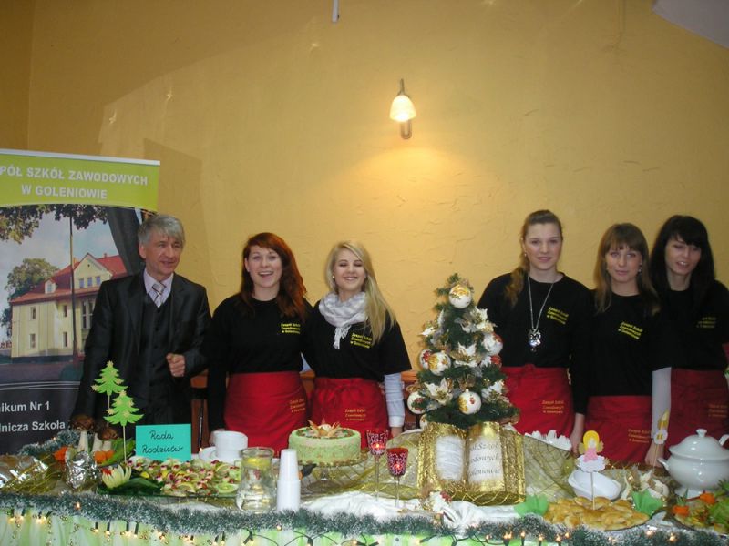 W związku ze zbliżającymi się Świętami Bożego Narodzenia Goleniowski Dom Kultury zorganizował 16 grudnia konkurs „Polskie Potrawy Wigilijne”. Swój udział w konkursie, tak jak w latach ubiegłych pod opieką Pani Kingi Gryczyńskiej- Rozdeba zgłosił Zespół Szkół Zawodowych w Goleniowie. W tym roku po raz pierwszy uczniów naszej szkoły silnie wspierała Rada Rodziców. Należy nadmienić, iż w konkursie wspólnie z naszą szkołą brała udział szkoła z Greifswaldu - Szkoła Zawodowa powiatu Pomorze Przednie- Greifswald w mieście uniwersyteckim i hanzeatyckim Greifswald, z którą od lat współpracujemy. Wszystkie potrawy prezentowane przez uczestników konkursu oceniane były w czterech kategoriach tj: zupy wigilijne, potrawy rybne, ciasta i wypieki oraz pierogi, uszka i inne potrawy. Dzięki zupie grzybowej przygotowanej przez uczennicę I klasy technikum hotelarskiego Dominikę Brzezińską oraz kotlecikom ziemniaczanym w sosie z borowików sporządzonych przez przedstawiciela Rady Rodziców – Pana Tadeusza Felbura zajęliśmy I miejsce w kategoriach: zupy wigilijne oraz pierogi, uszka i inne potrawy. Nasze potrawy docenili również kucharze z hotelu Radisson Blu ze Szczecina, przyznając Nam nagrodę specjalną- voucher o wartości 200 złotych. Na szczególną uwagę zasługuje przepiękna dekoracja naszego konkursowego stanowiska przygotowana przez panią pedagog szkoły - Panią Beatę Igras.