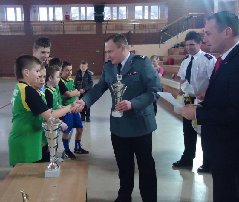 Zwycięskie zespoły z rąk I Zastępcy Komendanta Powiatowego Policji w Goleniowie podinsp. Roberta Nowaka otrzymały puchary. Następnie Komendant wspólnie z Wicestarostą Powiatu Goleniowskiego Tomaszem Kuliniczem wręczyli zwycięzcom oraz pozostałym drużynom dyplomy i nagrody rzeczowe – stroje i sprzęt sportowy.