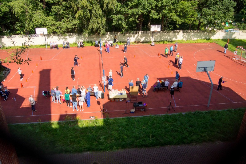 Impreza przebiegała w fantastycznej sportowej atmosferze przy muzyce zagrzewającej do zdrowej rywalizacji. W przerwie turnieju mecz specjalny rozegrała Pani Dyrektor z jednym z najstarszych mieszkańców Domu, byłym nauczycielem wychowania fizycznego.
