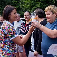 Pozostali mieszkańcy dzielnie kibicowali swoim zawodnikom wytypowanym z każdej grupy, za co zostali obdarowani medalami uśmiechu i słodkościami. Wszystkim zawodnikom Pani Dyrektor Iga Błażewicz wręczyła dyplomy uczestnictwa, upominki, słodkości, a za zajęcie 1 miejsca puchar.